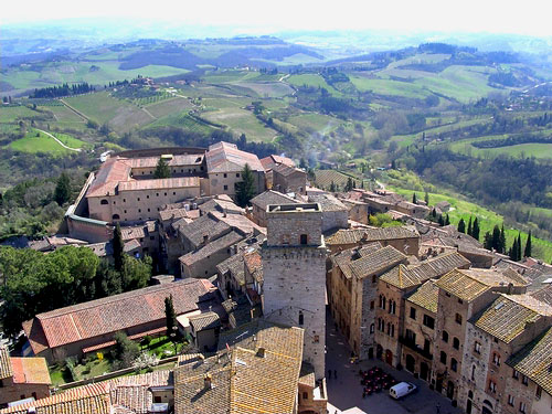 “托斯卡纳是个神奇的地方,她孕育了无数才华横溢的艺术家。”乔托、米开朗基罗、达芬奇、切利尼、布鲁内维斯基、吉贝里提、多那太罗、但丁、薄伽丘、普契尼,还有科学家伽利略,政治家马基雅维利……即使因为时间匆忙,来不及欣赏金色霞光中美丽的托斯卡纳乡村风光,以上那些闪亮的名字也足以使得这片土地熠熠生辉!诚然佛罗论撒和比撒是最耀眼的明珠。但托斯卡纳的神奇远不只于此,希耶纳,卢卡……还有众多隐藏在连绵群山中的迷人乡村,后边我们会一一提到。今天贴几张塔之城圣吉米那诺(人类遗产)。13,14世纪贵族们财富与权利象征的70多座塔,如今还留下来14座,寂寞的任由风吹雨打。