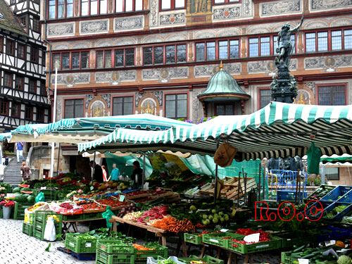 集市广场 集市广场背后古拙的市政厅 内卡河畔 集市广场上德国传统半木结构民居 |