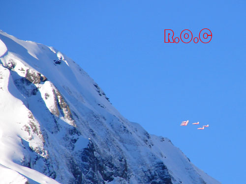 07年1月,连续两周的坏天气之后赶上一个难得的万里无云的晴天登顶少女峰。下山的时候空军飞行表演队出来凑热闹,记忆卡差点就顶不住了。
